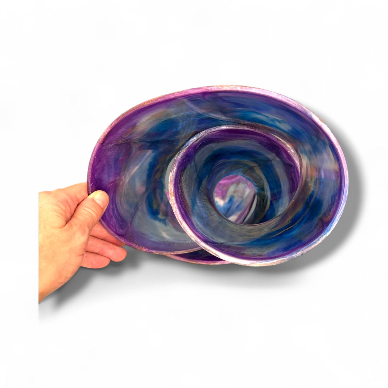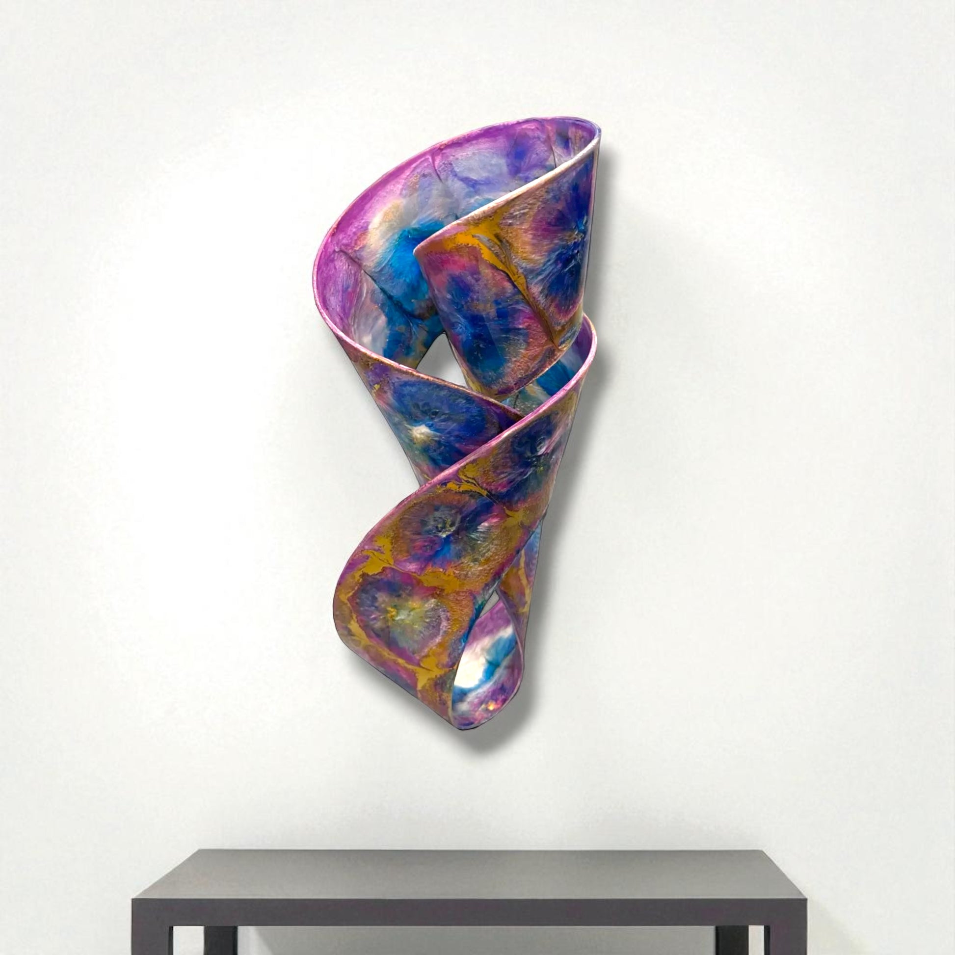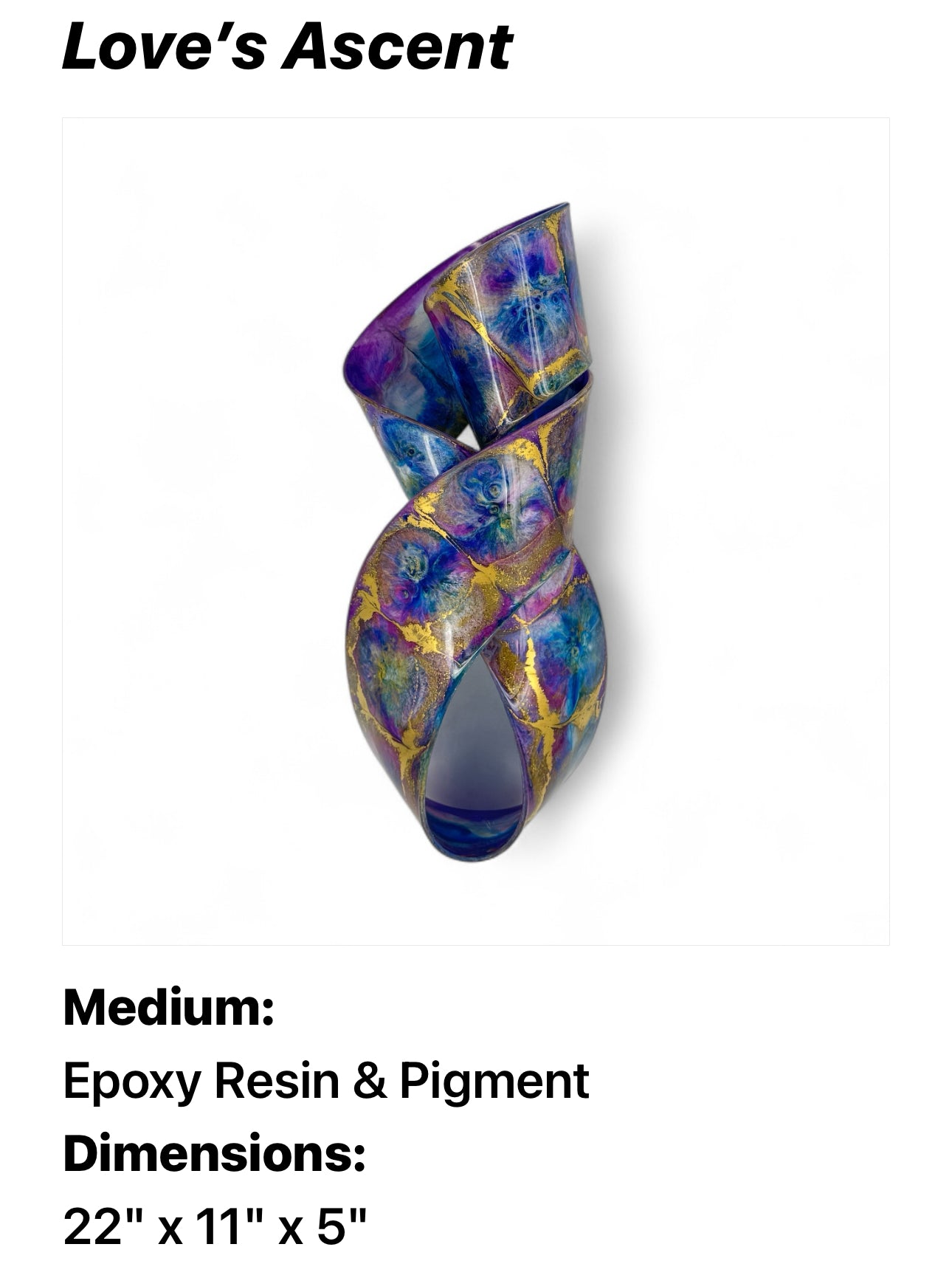Arms lift and wrap upward in a gesture of devotion, forming a sculptural presence that radiates quiet strength. Hand-shaped in resin, each layered surface shimmers with shifting light, capturing the stillness and grace of a moment held in prayer. This piece embodies serenity, resilience, and the unspoken power of faith.